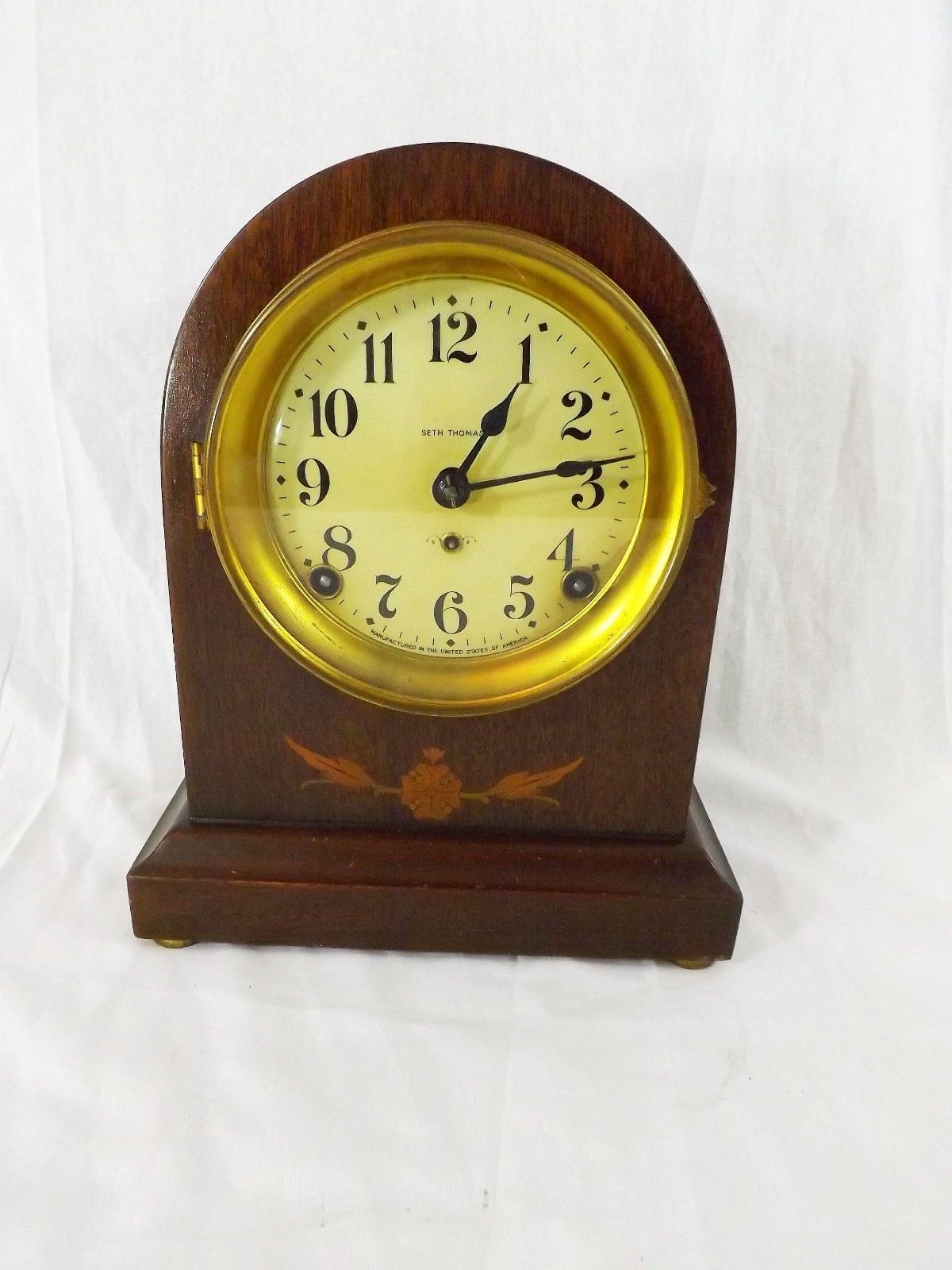 Title (ebay affiliate link): Antique Seth Thomas Mahogany Time and Strike Mantel Shelf Clock