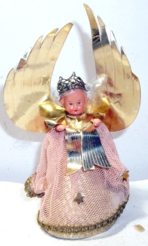 Title (ebay affiliate link): VINTAGE CHRISTMAS TREE TOPPER ANGEL - HARD PLASTIC DOLL WITH FOIL WINGS GERMANY