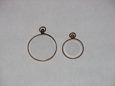 2 ANTIQUE GOLD COLOUR METAL & GLASS LOCKETS