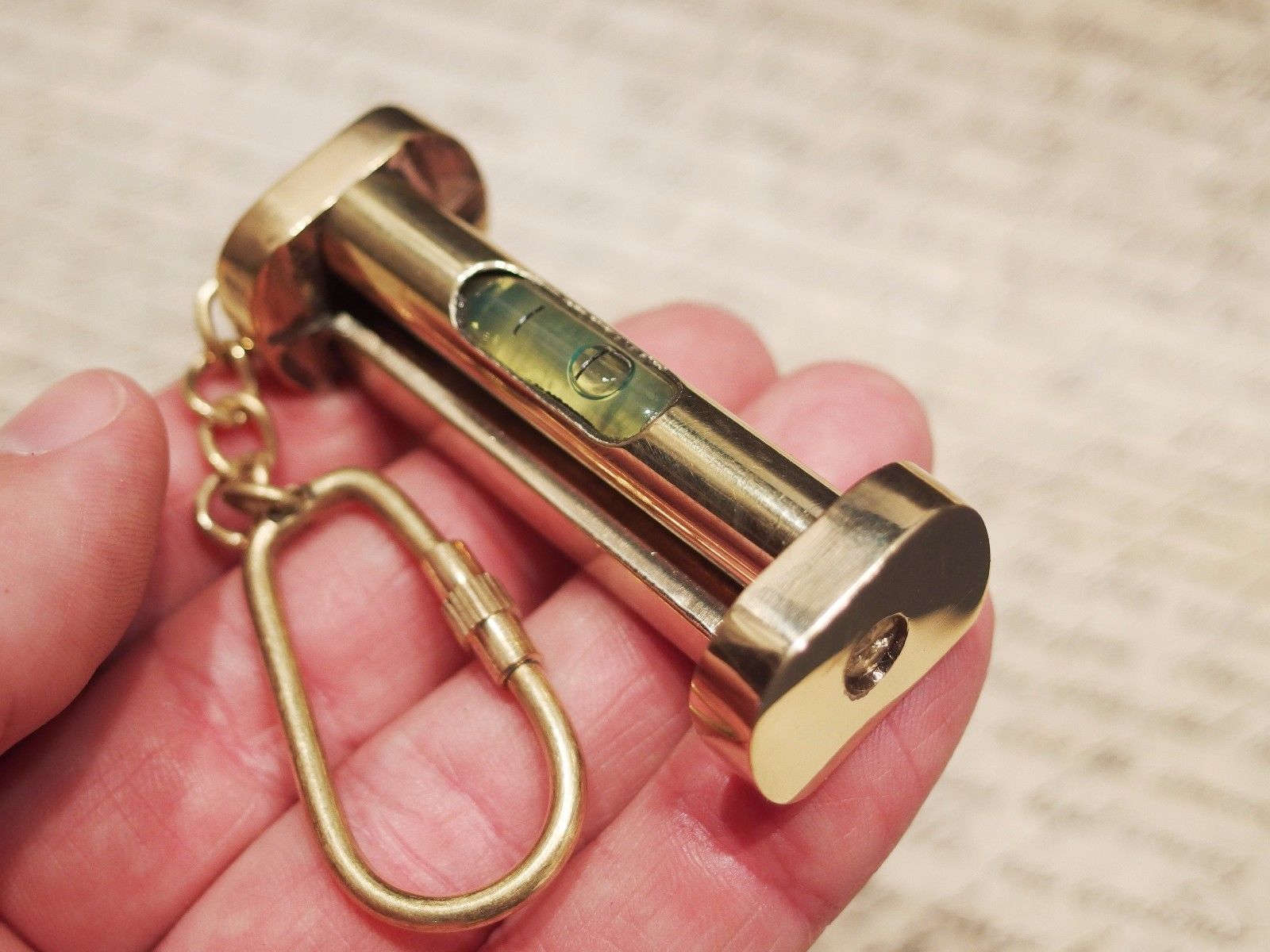 Title (ebay affiliate link): Vintage Antique Style Heavy Brass Bubble Level Carpenter Keychain Gift