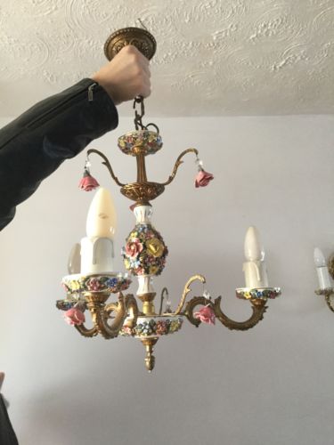 Title (ebay affiliate link): A vintage Shabby Chic Italian Floral Capodimonte porcelain chandelier c.1920-30