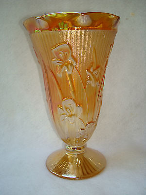 Title (ebay affiliate link): Jeannette Iridescent Marigold Carnival Iris & Herringbone Vase