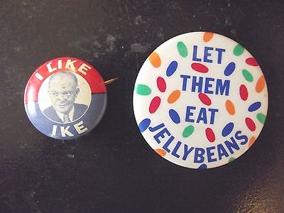 Title (ebay affiliate link): Two Vintage Political Pin Back Buttons I Like Ike & Let Them Eat Jellybeans