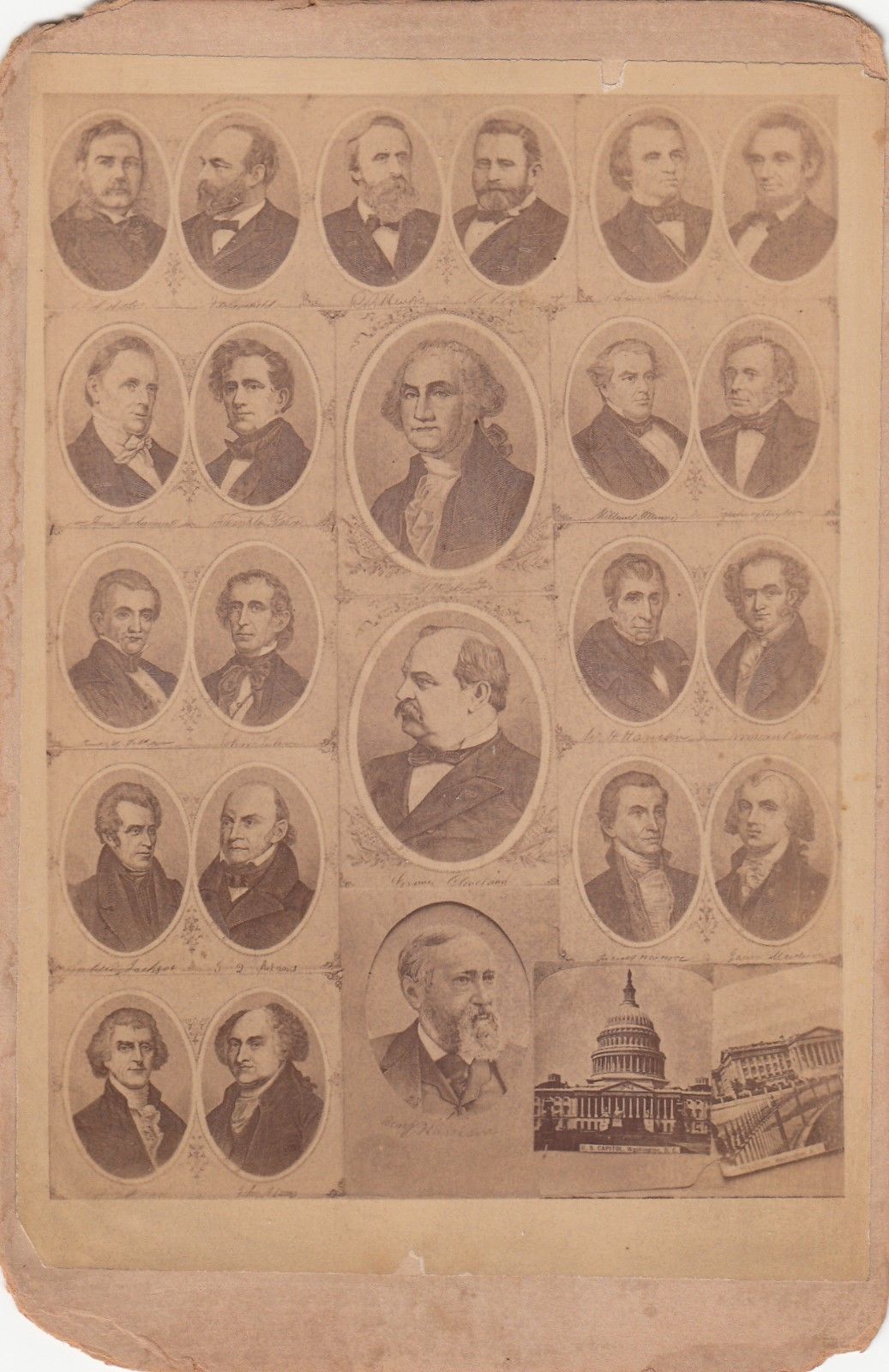 Cabinet card of presidents Washington through Cleveland or Harrison