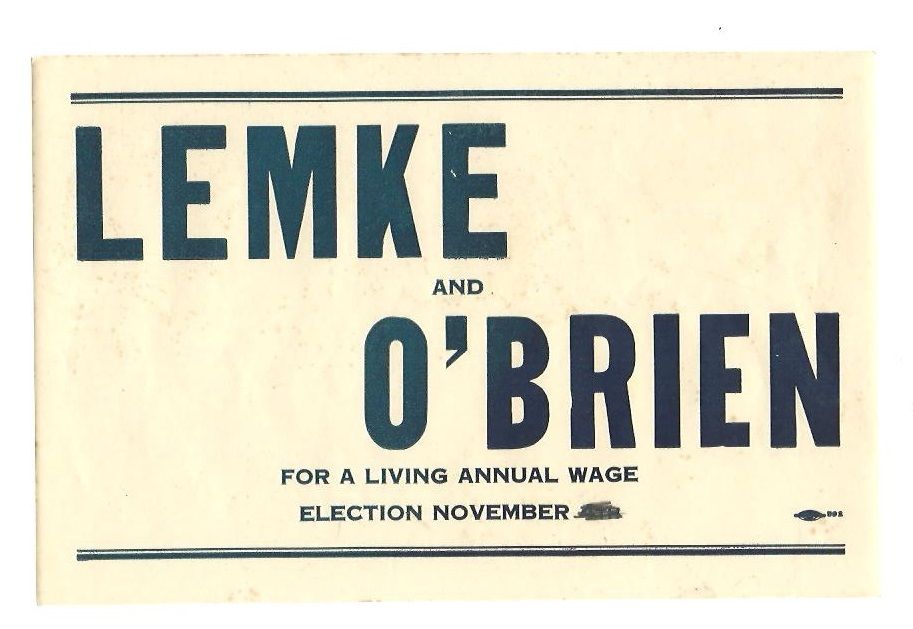 Title (ebay affiliate link): LEMKE AND O'BRIEN UNION PARTY 1936 SCARCE POLITICAL CAMPAIGN STICKER