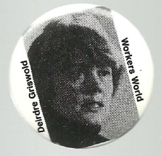 Title (ebay affiliate link): DEIRDRE GRISWOLD WORKERS WORLD PARTY 1980 PRESIDENTIAL CAMPAIGN PIN