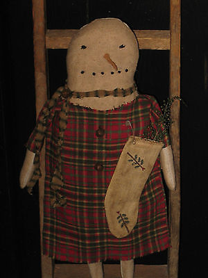 PRIMITVE Folk Art Snowman Doll Christmas Stocking
