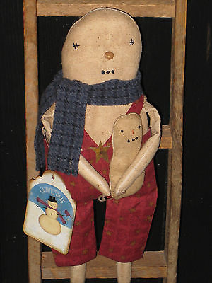 PRIMITVE Folk Art Snowman Doll Christmas Winter