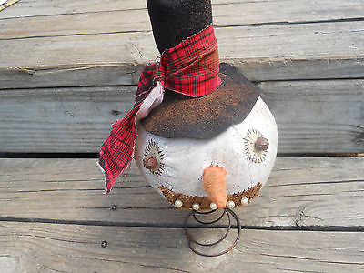 Primitive Folk Art Christmas Grungy Snowman Ornie Rusty Spring Nodder Decor