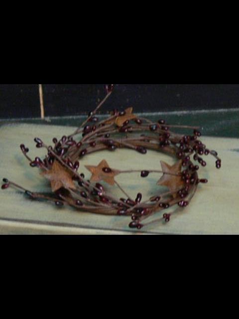 Title (ebay affiliate link): Primitive 4.5" Candle Ring With Rusty Stars Burgundy Home Decor Pip Berries