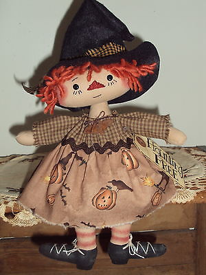 Primitive Raggedy Ann Bats, Crows & Pumpkins Lil Witch Annie