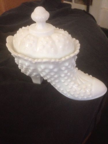 FENTON, White Hobnail Milk Glass Shoe With Top
