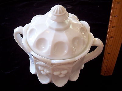 Title (ebay affiliate link): Vintage Westmoreland Thumbprint Cherry Milk Glass Covered Compote Bowl w/handles