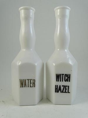 Title (ebay affiliate link): Vintage Barber Bottle Set White Milk Glass Witch Hazel Water Barbershop Antique