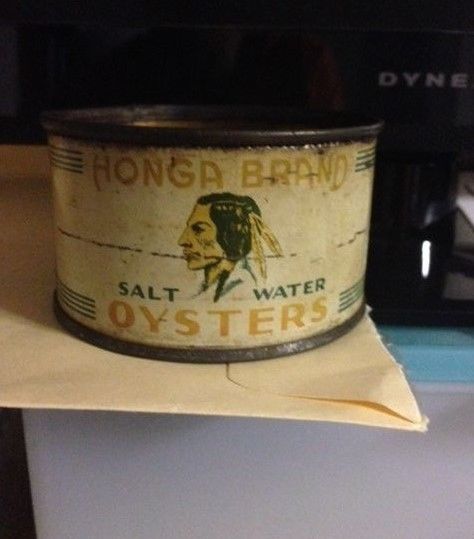 Title (ebay affiliate link): HONGA BRAND SALT WATER OYSTER TIN CAN 1/2 PINT SIZE VINTAGE