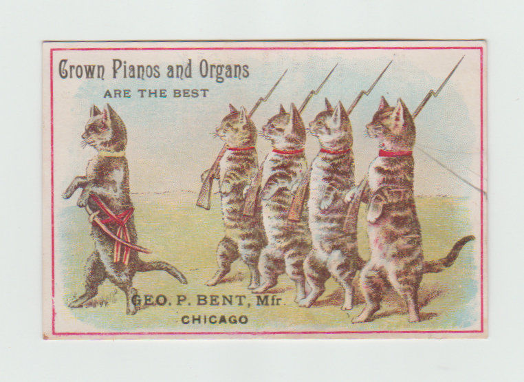 Victorian Trade Card, Crown Pianos and Organs, Cats