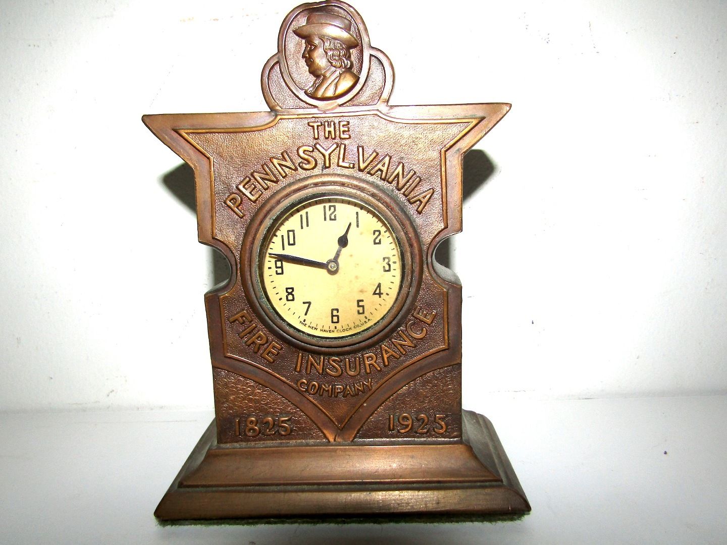 Title (ebay affiliate link): Early Bronze New Haven Advertising Mantle Clock Pennsylvania Fire Ins Co 1925