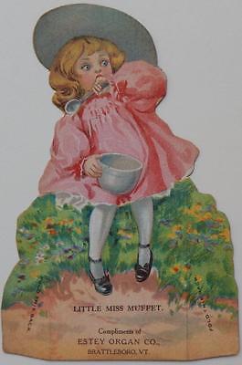 Vintage Trade Card Estey Organ Die Cut Stand Up Little Miss Muffet Paper Doll