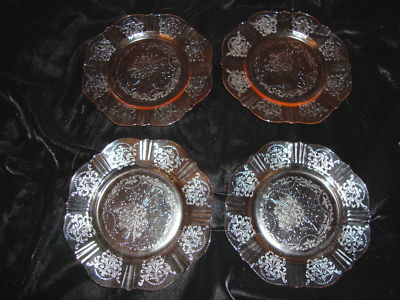 Title (ebay affiliate link): 4 Pink AMERICAN SWEETHEART Depression Glass B&B Plates
