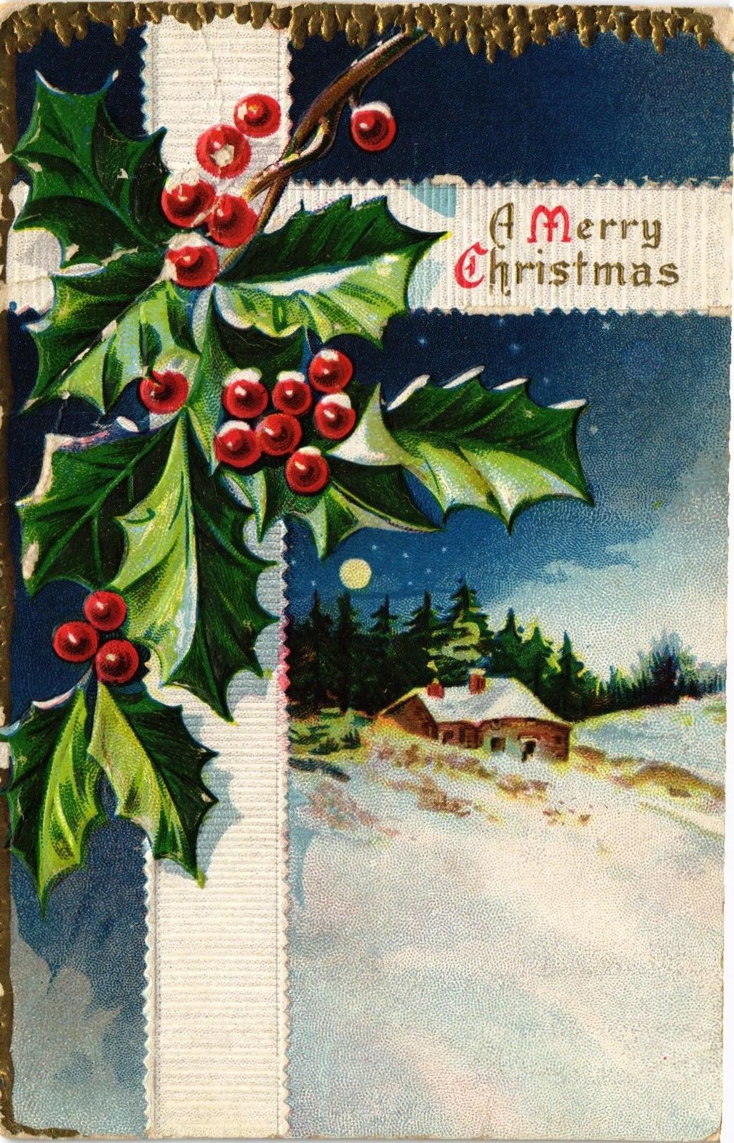 DR JIM STAMPS US CHRISTMAS HOLLY SCENIC POSTCARD