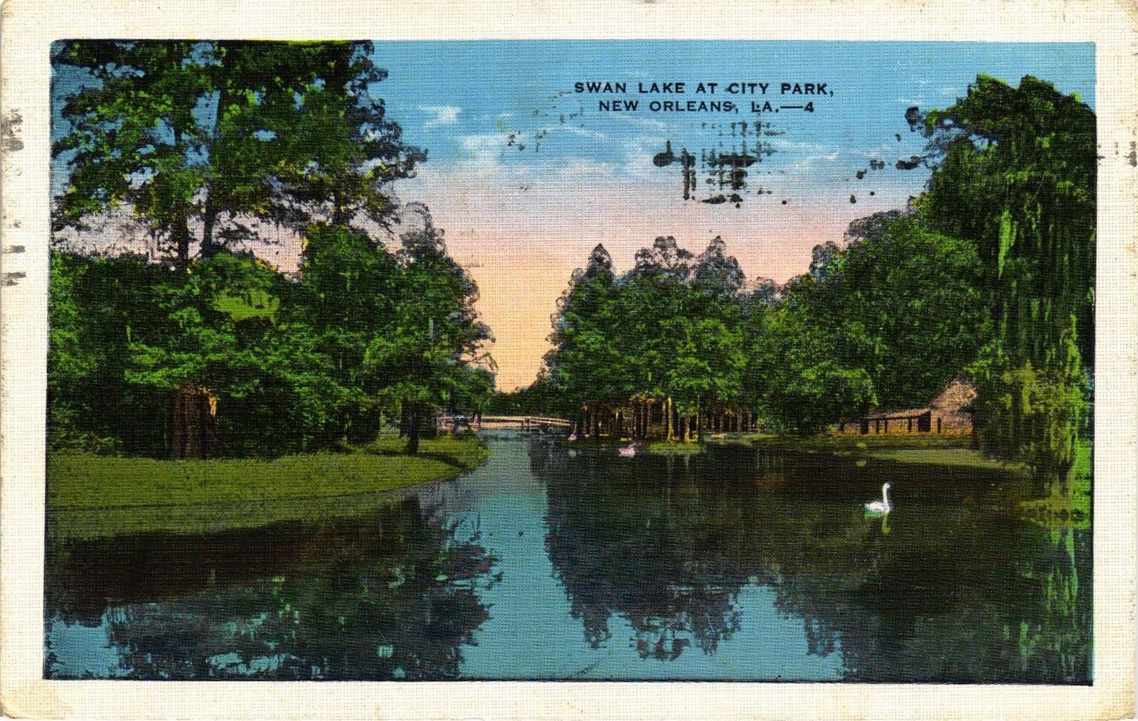 Title (ebay affiliate link): DR JIM STAMPS US SWAN LAKE AT CITY PARK NEW ORLEANS POSTCARD 1934