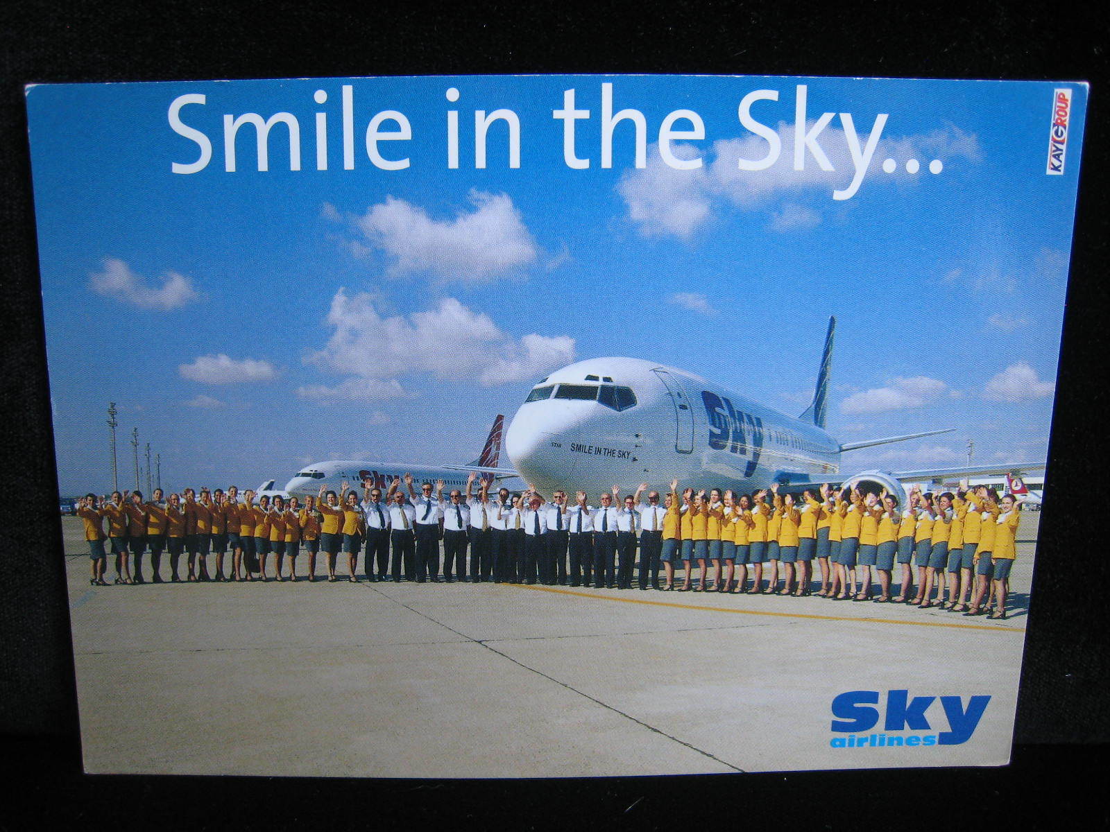 SKY AIRLINES STEWARDESS HOSTESS PILOT CREW BOEING B-737 Airplane A/I Postcard