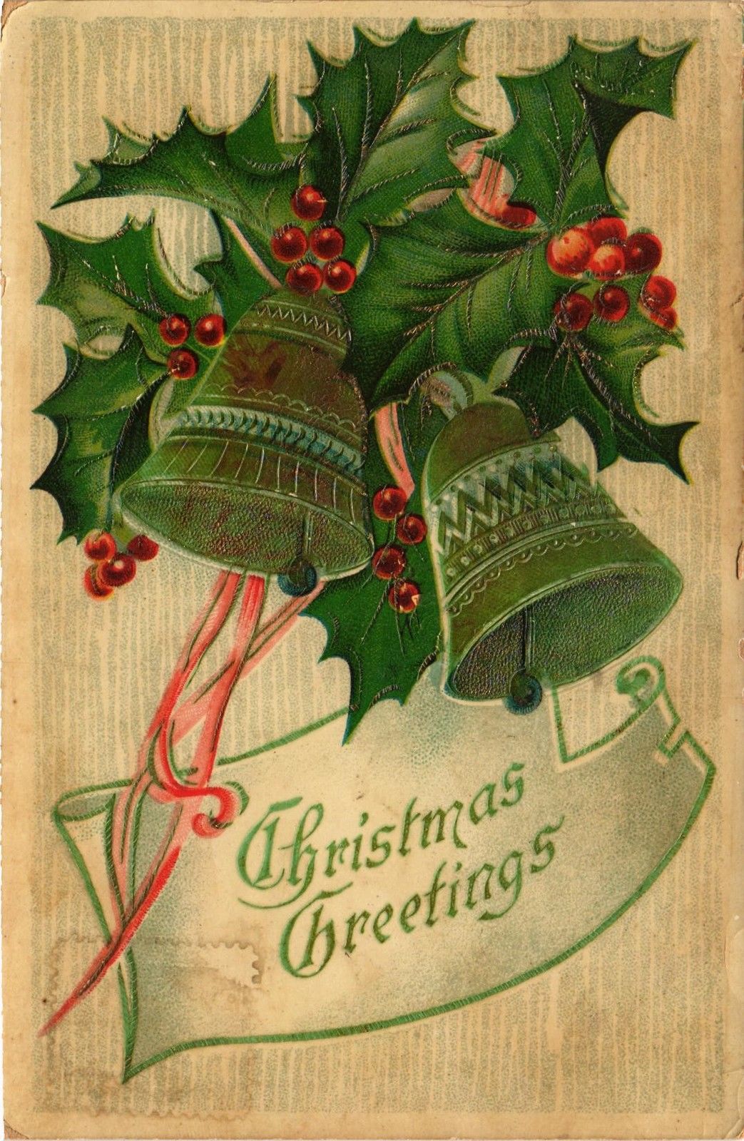 Title (ebay affiliate link): DR JIM STAMPS US HOLLY & BELLS CHRISTMAS POSTCARD 1913