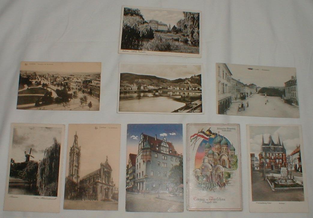Lot Of 9 WW1 Era German Postcards Vintage Used Stamps