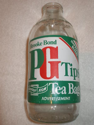 BROOKE BOND PG TIPS advertisement glass milk bottle