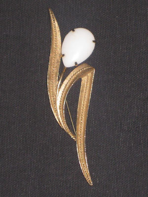 Signed Sarah Coventry deco milk glass flower brooch
