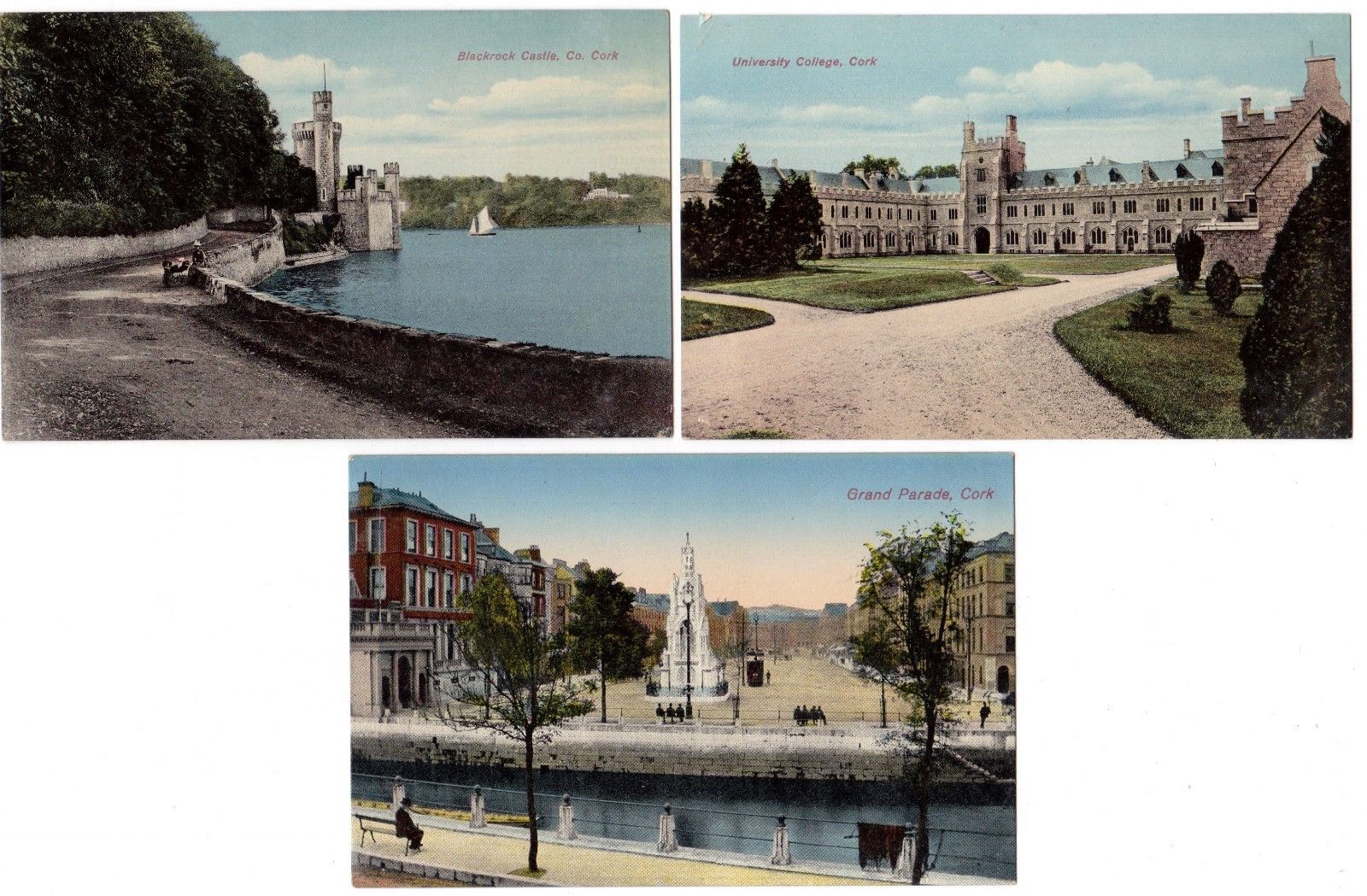Title (ebay affiliate link): 3 ANTIQUE GRAND PARADE BLACKROCK CASTLE UNIVERSITY COLLEGE CORK IRELAND POSTCARD