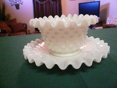 VTG FENTON WHITE MILK GLASS BOWL HOBNAIL BOWL PLATE