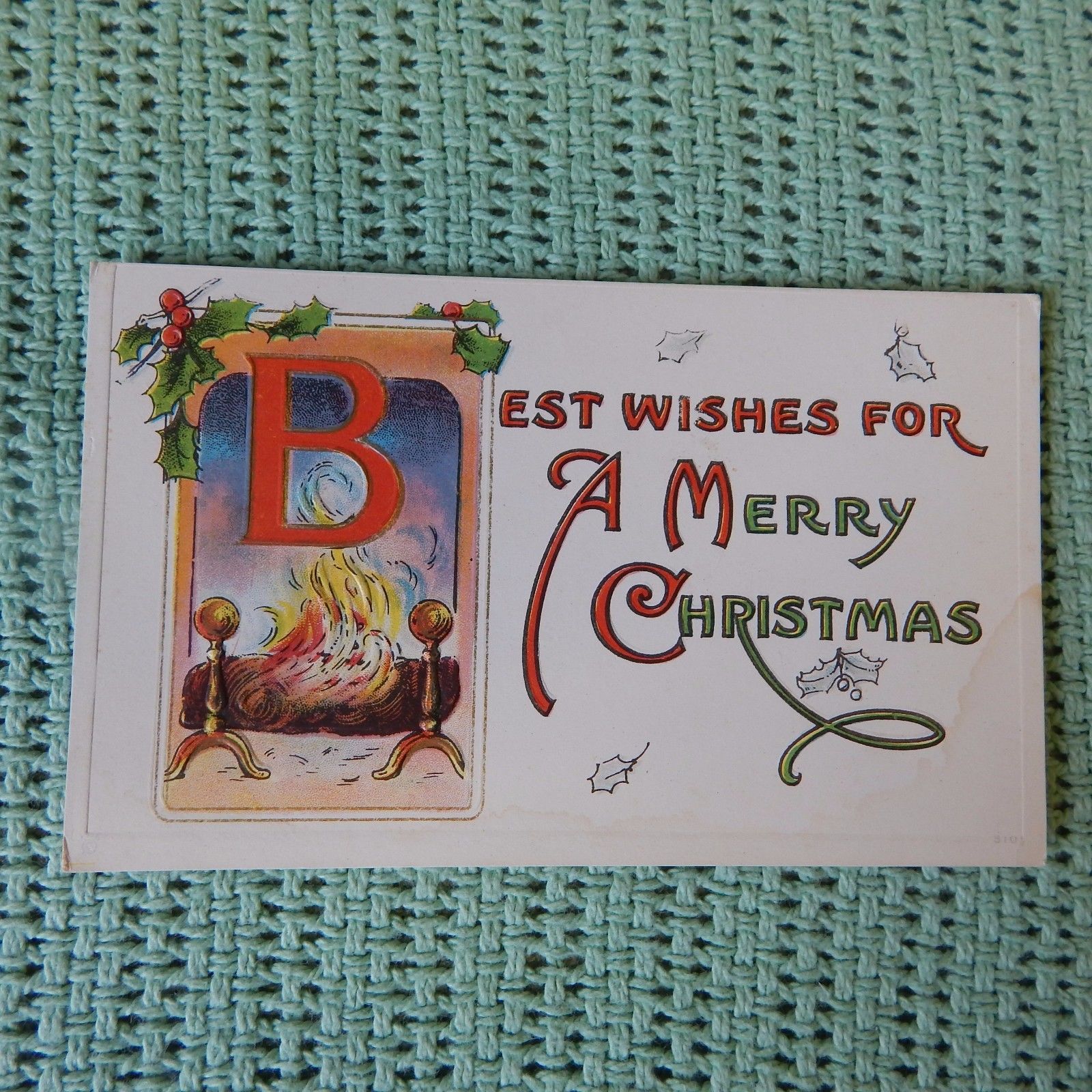 Title (ebay affiliate link): Vintage Postcard Best Wishes For A Merry Christmas, Fireplace Scene
