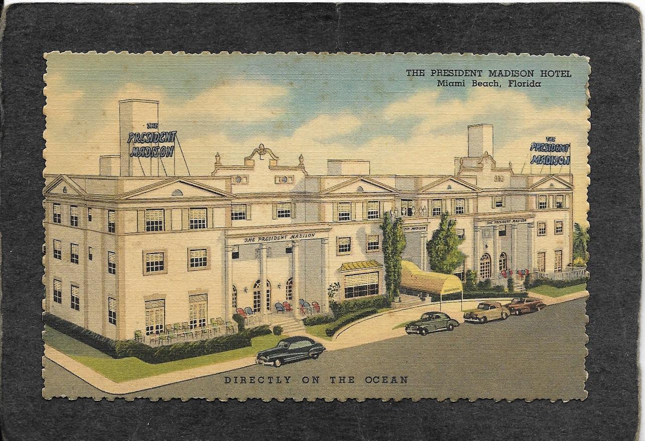 Miami Beach(South Beach),FL-President Madison Hotel linen- mint antique postcard