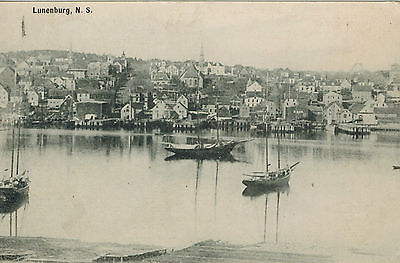 NOVA SCOTIA, LUNENBURG, C1910, W.E. HEBB, SCHOONERS, CHURCH, PANORAMIC HARBOR