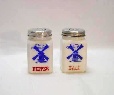 VINTAGE MILKGLASS SALT & PEPPER SHAKERS W WINDMILL