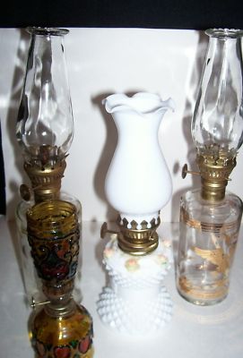 Lot of 4 Oil Lamps - Amber, Milk Glass, Enesco, Eagles