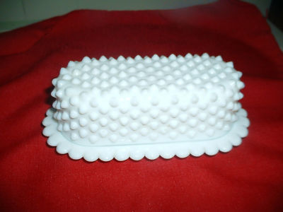 Vintage Hobnail Whiter Milk Glass Butter Dish
