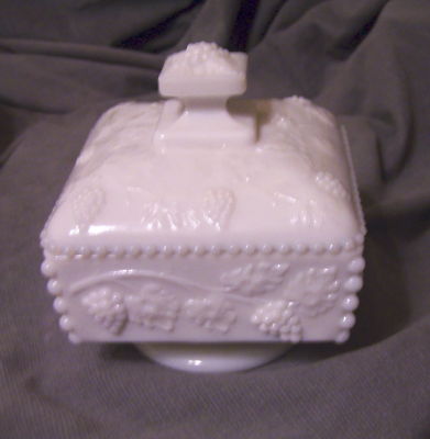 Westmoreland Milk Glass Grape and Vine Candy Jar