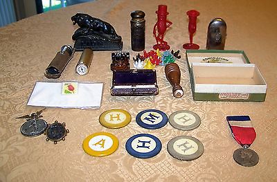 VINTAGE JUNK DRAWER LOT :AdmirationBox- Pins-Lion-Tire Guage-Coty-Much More