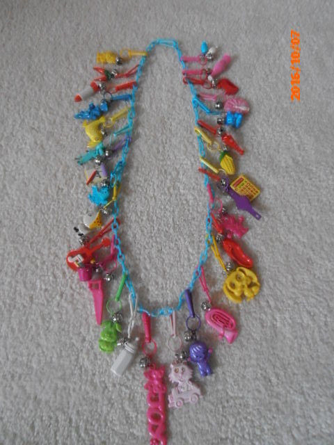 Title (ebay affiliate link): 1980'S VINTAGE BELL CLIP PLASTIC CHARM NECKLACE WITH 30 RETRO 80'S CHARMS!! #1