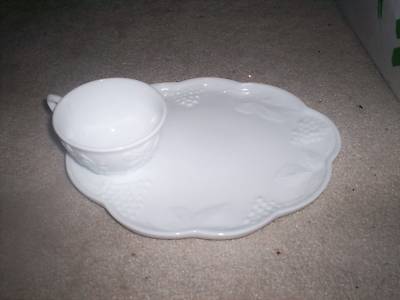 6 Vtg Indiana White Milk Glass Grapes Snack Plates Cups