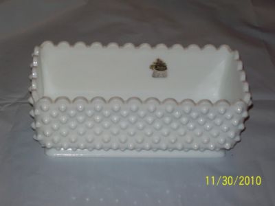 Vintage Fenton Milk Glass Scalloped Hobnail Planter