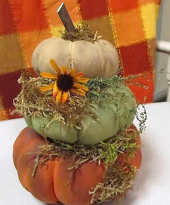 Title (ebay affiliate link): Handmade Primitive Pumpkins painted stained muslin stack of 3
