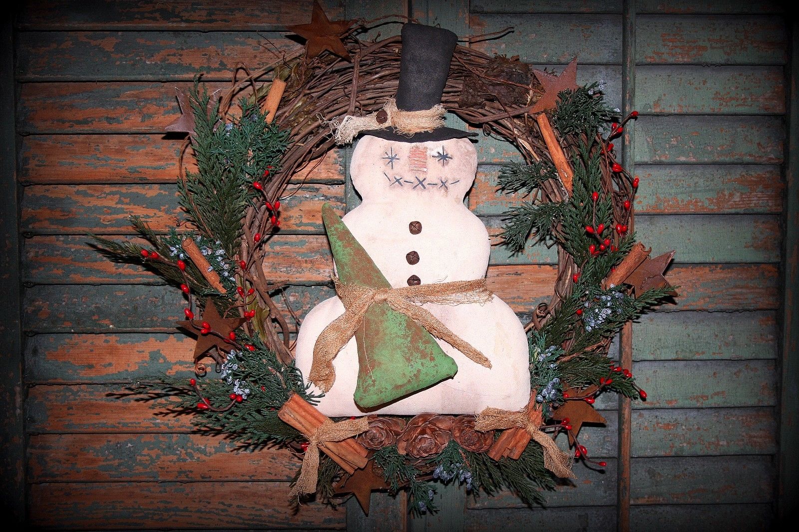 Title (ebay affiliate link): Primitive Snowman, Christmas Tree Wreath Wall/Door hanger