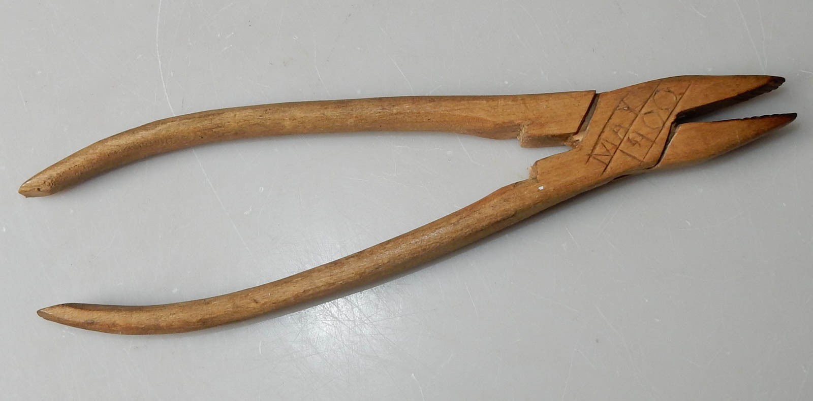 Antique Wood Primitive Folk Art Carved Pliers Whimsey 1900