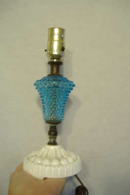 Vintage Milk Glass & Blue Hobnail Table Lamp