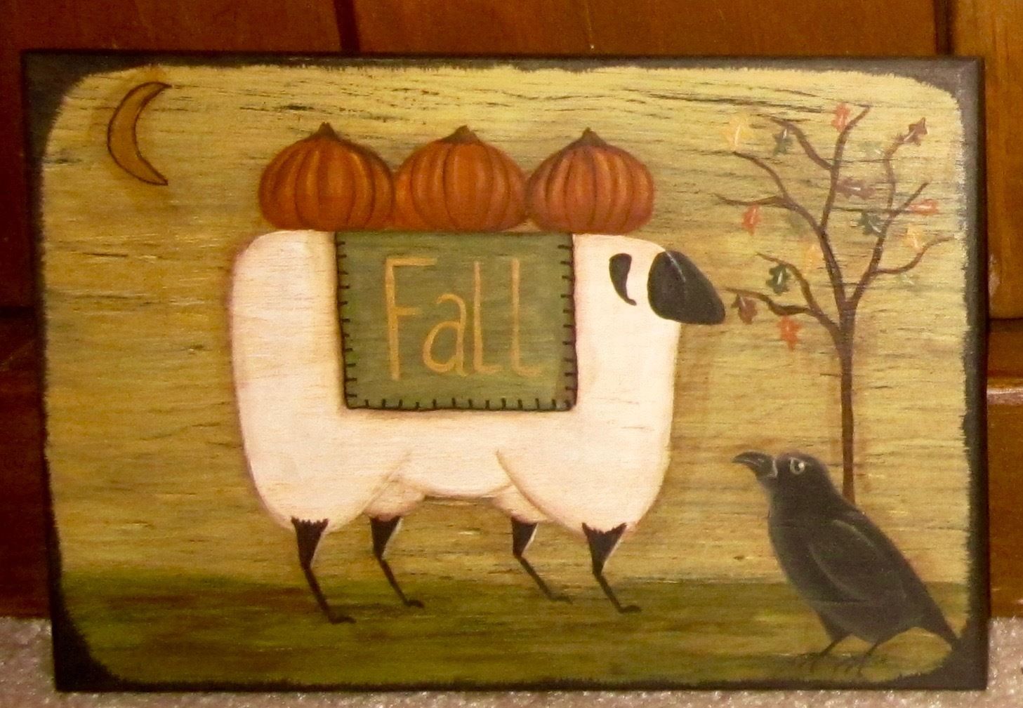Title (ebay affiliate link): *~*PRIMITIVE*~* HP FOLK ART PRIM SHEEP * PUMPKINS * CROW * FALL *~* BOARD