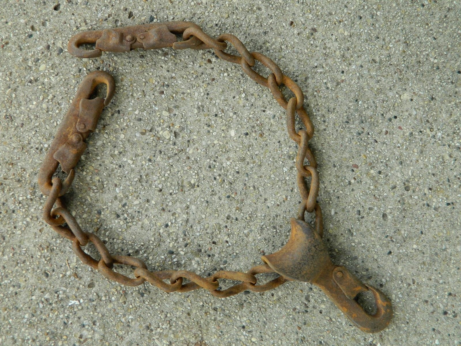 Rustic Vintage Chain, Antique Farm Equipment, Rusty Chain Cast Iron Clip Hooks