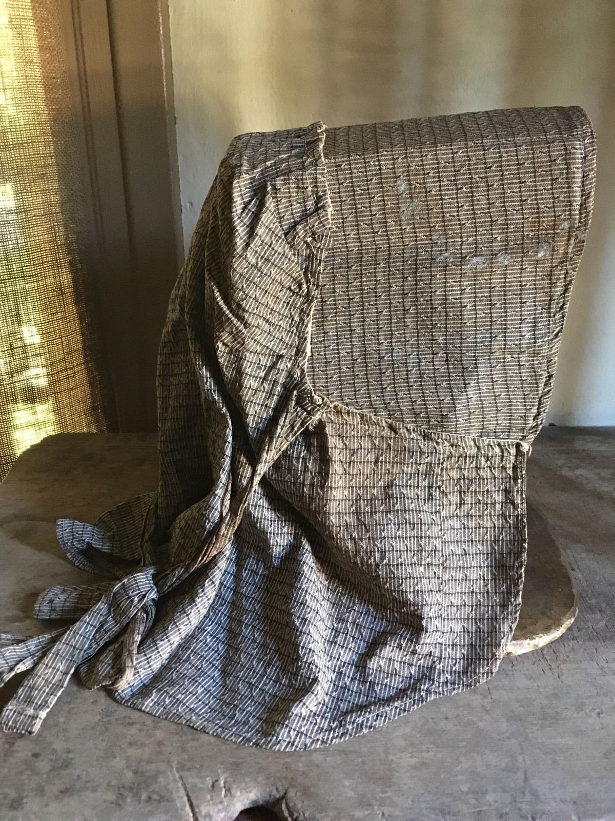 Title (ebay affiliate link): Antique Black & Cream Handmade Ladies Staved Bonnet Textile AAFA Calico WOW!